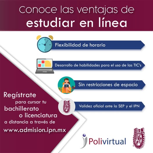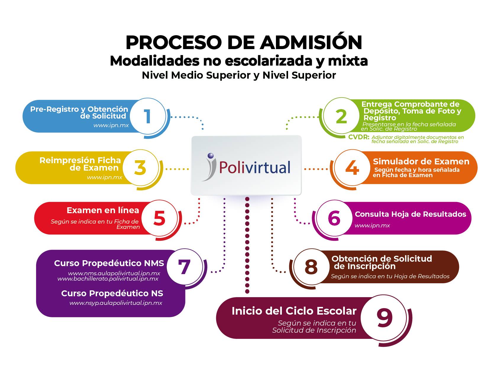 Para ingresar al Programa Polivirtual del Instituto Politécnico Nacional (IPN) en cualquiera de los niveles: medio superior y superior, en algunas de sus modalidades no escolarizada y mixta, es importante llevar a cabo todo lo correspondiente al proceso de admisión.